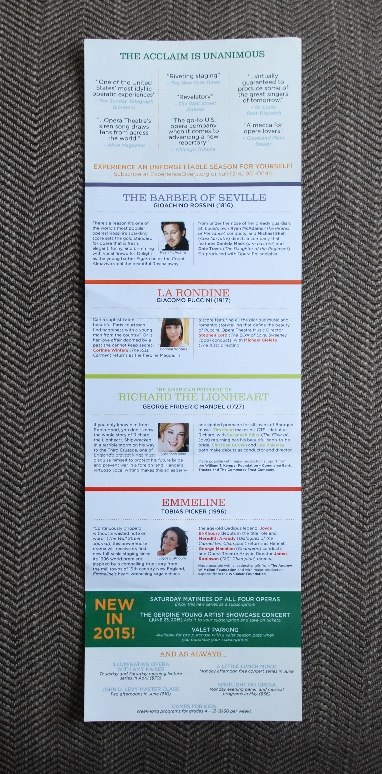2015 Season Pocket Calendar | Opera Theatre of Saint Louis, Print (2014)